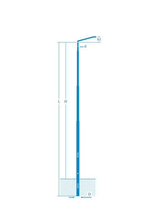 The poles are made using standard S275JR steel pipes (Fe 430B) with mechanical characteristics that comply with the UNI EN 10025 standard.