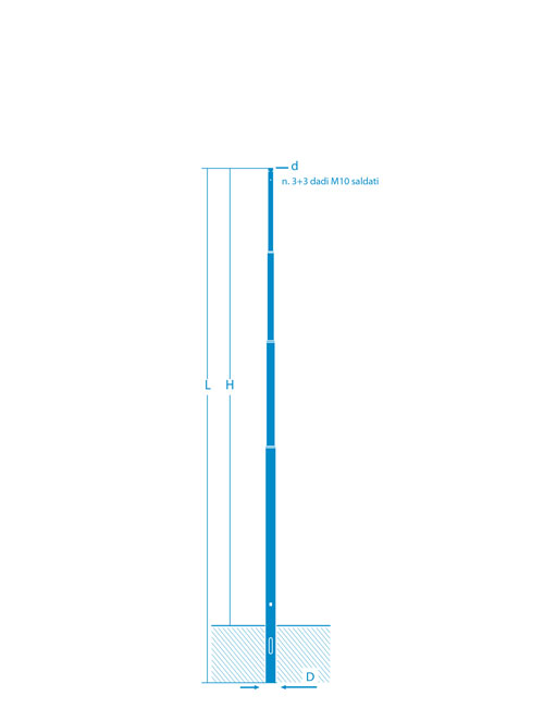 The poles are made using steel sheet S235JR (Fe 360B) with mechanical characteristics that comply with the UNI EN 10025 standard.