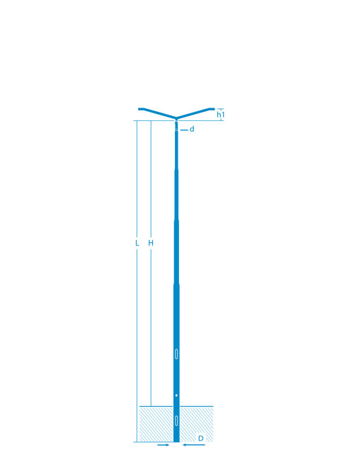 The poles are made using steel sheet S235JR (Fe 360B) with mechanical characteristics that comply with the UNI EN 10025 standard.