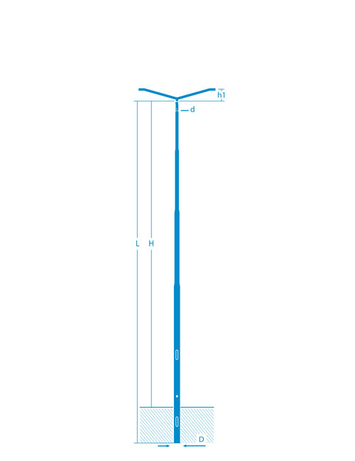 The poles are made using steel sheet S235JR (Fe 360B) with mechanical characteristics that comply with the UNI EN 10025 standard.