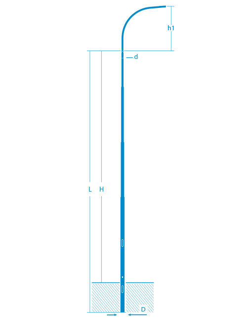 Pali rastremati saldati con sbraccio singolo riportato RDI 10800/3 BH